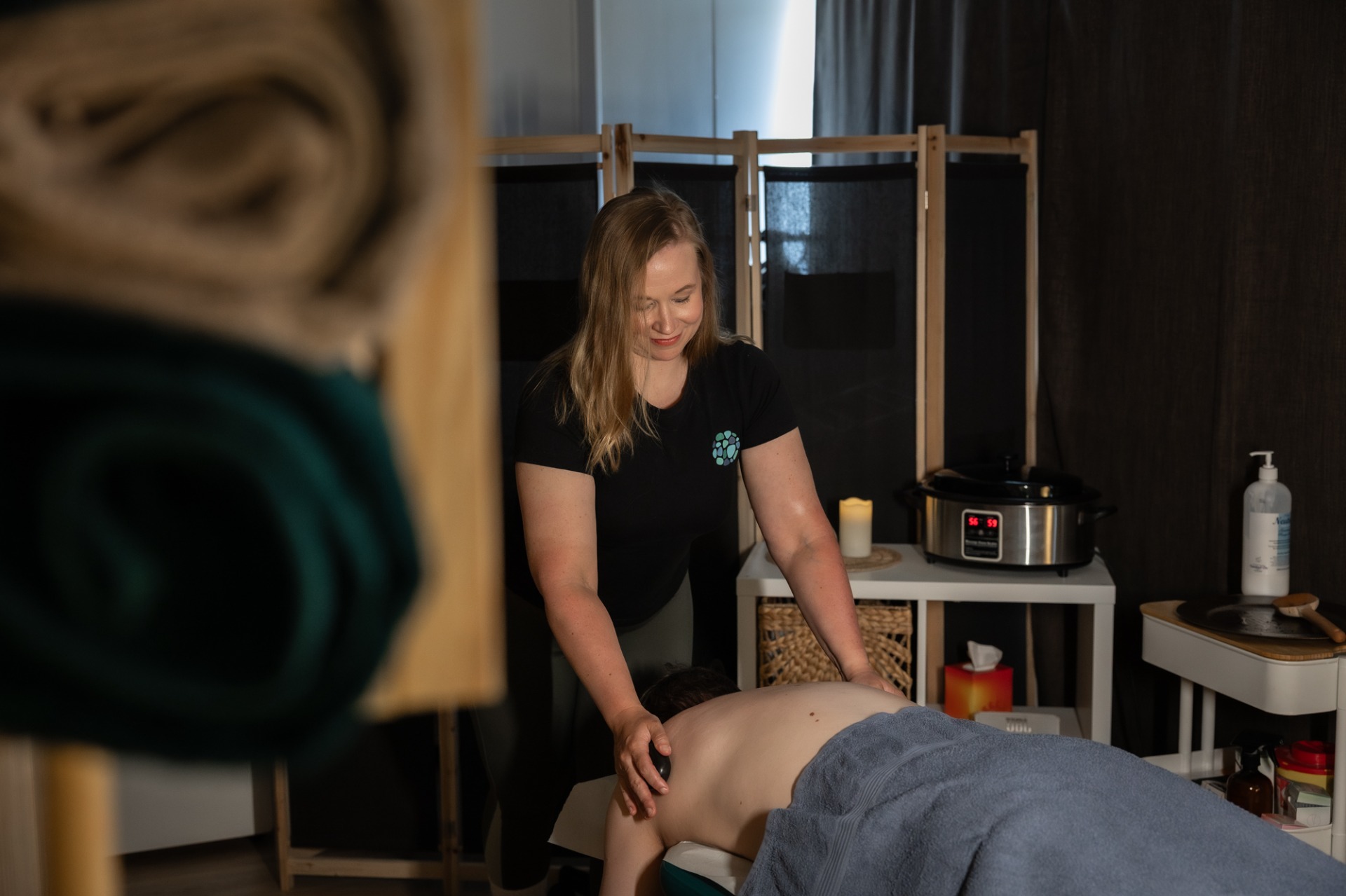 • Lihasjännitysten ja kipujen vähentäminen: Hieronta voi helpottaa niska-hartiaseudun kipuja, alaselän jännityksiä ja muita lihaskipuja.